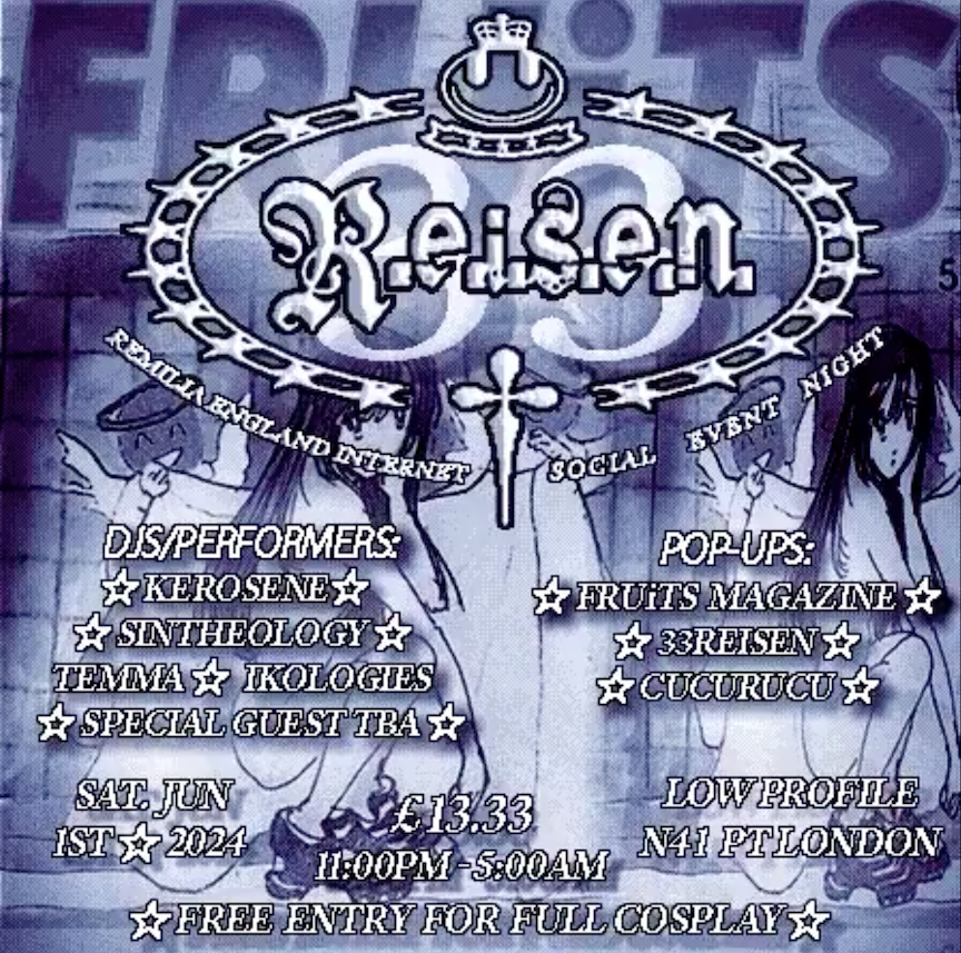 33reisen was the third installment of the 33Reisen rave series held on June 1, 2024, at Low Profile in North London. Organized by Remilia Corporation, the event featured breakcore DJs and fashion pop-ups representing the emerging aesthetics associated with Remilia Corporation.[1]