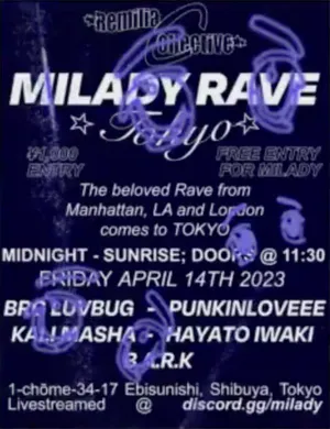 BRG made their live debut at Milady Rave Tokyo as part of Remilia-Con Tokyo 2023, with Luvbug and Clearpill being flown out by Fang to perform. This would ultimately be their only official live performance.[13]