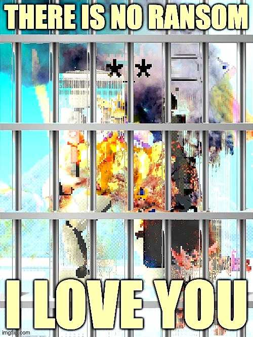 | "There is no ransom / I love you" Image attached to Charlotte Fang's post announcing the thefts, depicting a deep-fried WTC Bonkler experiencing an explosion behind jail bars. | |