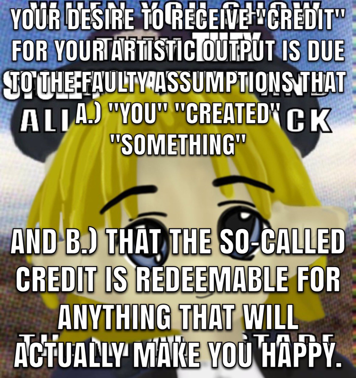 YOUR DESIRE TO RECEIVE "CREDIT" FOR YOUR ARTISTIC OUTPUT IS DUE TO THE FAULTY ASSUMPTIONS THAT